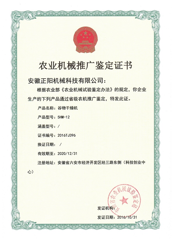 農(nóng)業(yè)機(jī)械推廣鑒定證書